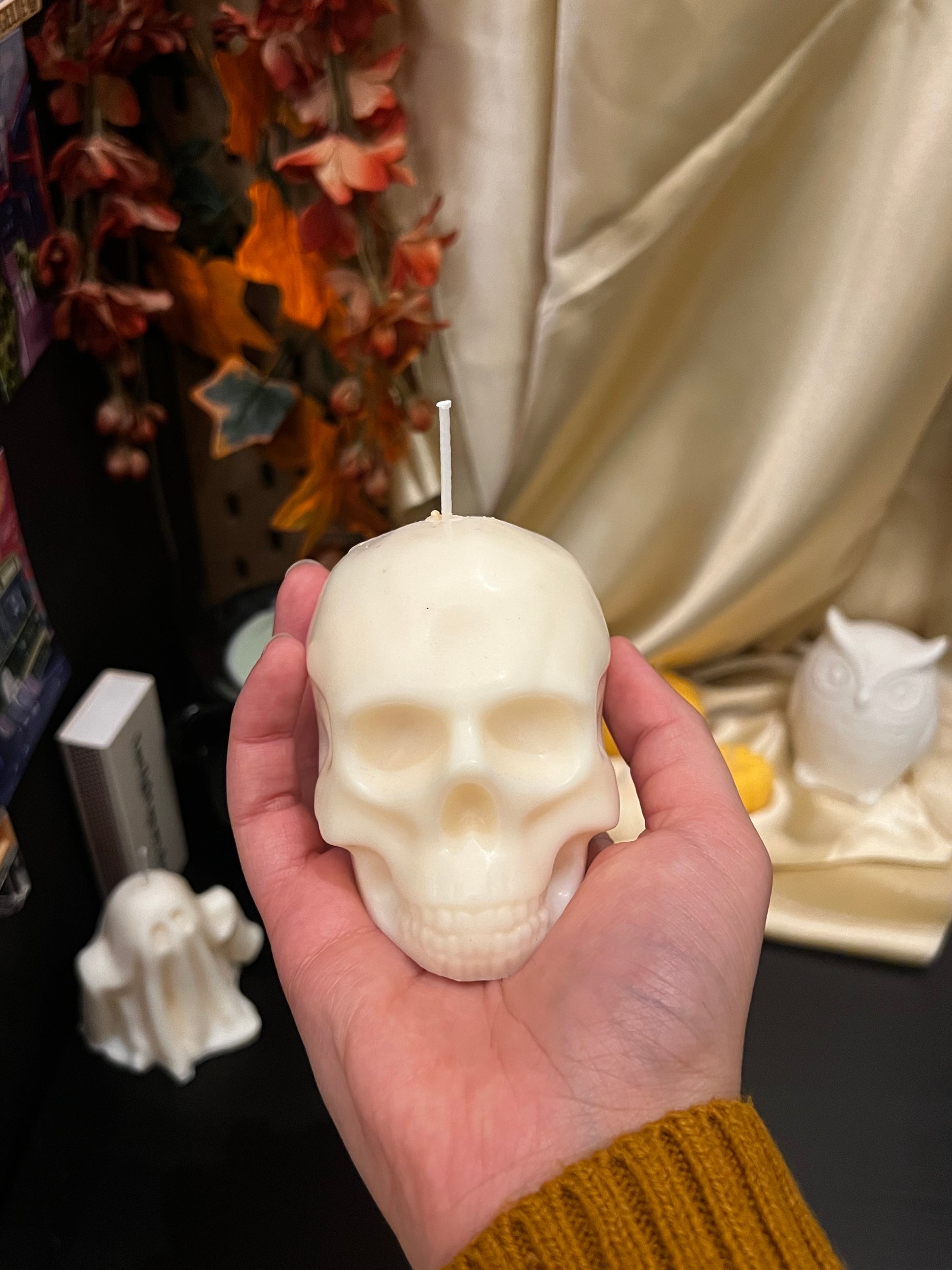 Its the spooky season! Decorate your space with our skull candles!