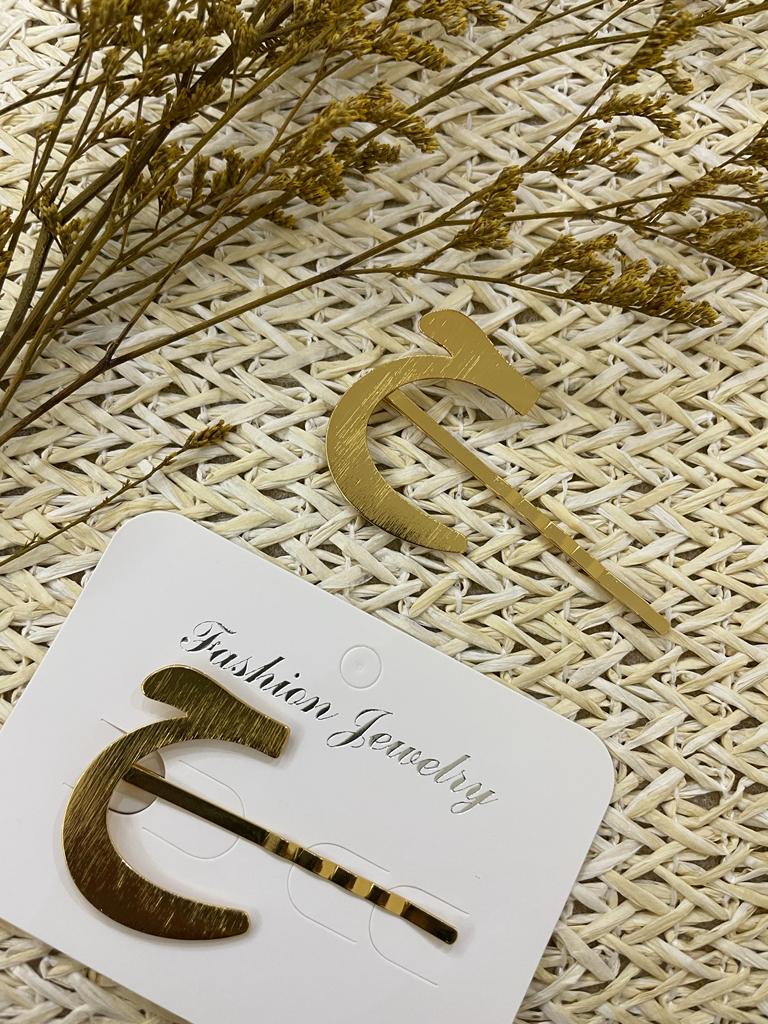 Golden hair clips for girls and women with Arabic letters, each order contains one piece only.